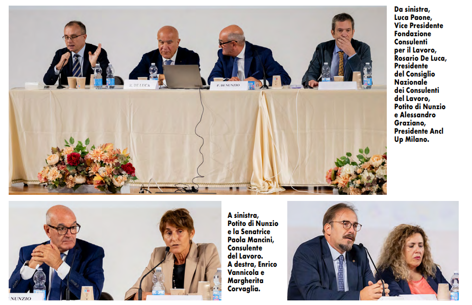Durante il convegno è stato posto l’accento sulla lotta all’abusivismo professionale, fenomeno particolarmente sentito in territori ricchi come Milano e la Lombardia che lede gli interessi della pubblica amministrazione, dei lavoratori e dell’intera categoria dei consulenti del lavoro La recente nota del Ministero che individua il perimetro di attività dei CED (Centri di Elaborazione Dati) rappresenta un passo importante ed è necessario sviluppare un’azione di accompagnamento dei colleghi verso forme societarie legittime. L’Ispettorato Nazionale, nel suo intervento, ridefinisce i confini dell’articolo 1 della Legge n. 12 del 1979, distinguendo chiaramente tra “abilitati” (consulenti del lavoro) e “autorizzati” (commercialisti e avvocati), e definendo i limiti operativi dei CED (Centri Elaborazione Dati). Ma non solo: viene lanciato anche un monito alla categoria: l’abusivismo non è solo esterno, ma anche interno. Ci sono consulenti che utilizzano i CED in modo improprio o sorreggono società non del tutto lecite. Una risposta concreta potrebbe consistere nel dare agli ispettorati la possibilità di sospendere immediatamente le attività abusive, così come avviene per il lavoro nero. È stata denunciata con forza la presenza di consulenti del lavoro che “si lasciano comprare” da società che vendono servizi professionali come prodotti da supermercato, violando norme deontologiche e civilistiche. Dietro queste società, ci sono spesso consulenti del lavoro che deturpano l’onore dell’intera categoria. Una chiave di lettura unitaria è emersa in conclusione del Convegno: la parola “chiave” è “responsabilità”. Chi opera nell’abusivismo si sottrae proprio a questo: responsabilità professionale, deontologica, verso clienti e lavoratori. La battaglia non deve essere solo repressiva, ma soprattutto culturale: essere professionisti significa assumersi responsabilità, metterci la faccia. Affidarsi a professionisti responsabili non è un costo, ma un investimento nella sicurezza, nella legalità, nel futuro dell’azienda.