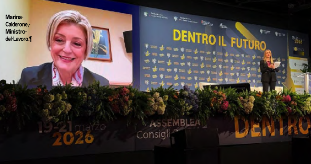 sottolineando come i Consulenti del Lavoro possano svolgere un ruolo significativo nella transizione digitale e nella crescita delle competenze. Il Ministro e Collega Marina Calderone, in collegamento dall’estero, ci ha parlato della riforma delle professioni per riaffermare la centralità delle professioni nel lavoro che cambia. Tra i temi affrontati, anche la modernità del pensiero del prof. Marco Biagi e la sua visione delle politiche attive. Il Ministro ha inoltre sottolineato il ruolo dei Consulenti del Lavoro nell’accompagnare imprese e lavoratori nelle trasformazioni del mercato, evidenziando il valore delle competenze e della qualità professionale in una fase di profondo cambiamento.